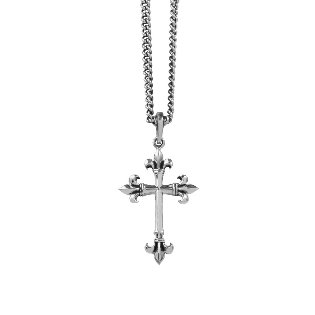 Sterling Silver Big Fleur-de-lis Pendant Cross Necklace