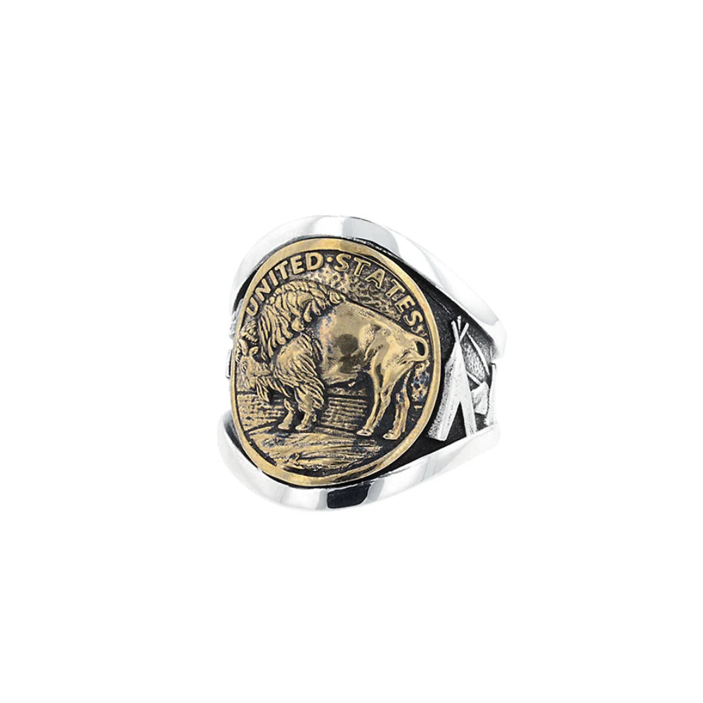 Sterling Silver & Gold Alloy Buffalo Nickel Cigar Band Ring