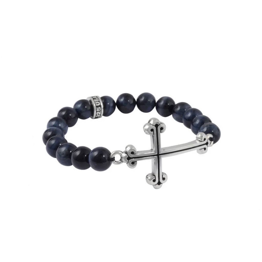 Sterling Silver Blue Tiger's Eye Large Cross Bracelet