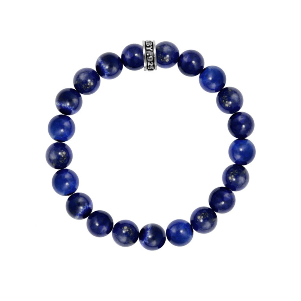 Sterling Silver Lapis Beaded Bracelet with Logo Ring