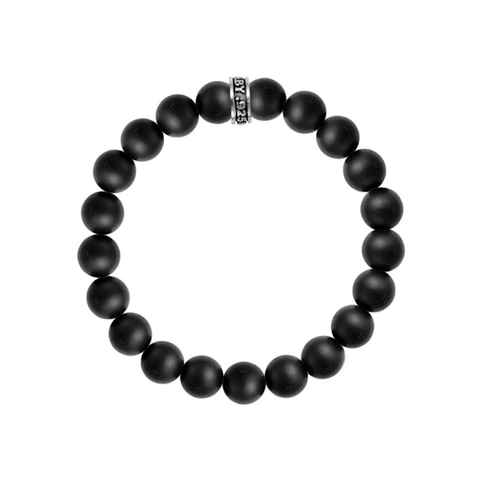 Sterling Silver Black Onyx Beaded Bracelet with Logo Ring