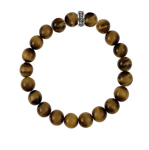 Sterling Silver Brown Tiger's Eye Beaded Bracelet with Logo Ring