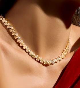 18K Gold Lunaria Collar Necklace with Mixed Gemstones