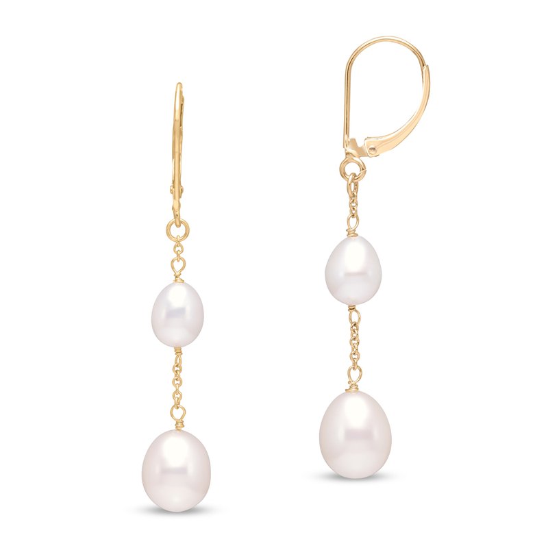 Elevate your style with these elegant drop earrings, crafted from 14K yellow gold and adorned with lustrous 6-9mm white freshwater pearls. These exquisite earrings are perfect for adding a touch of sophistication to any outfit.