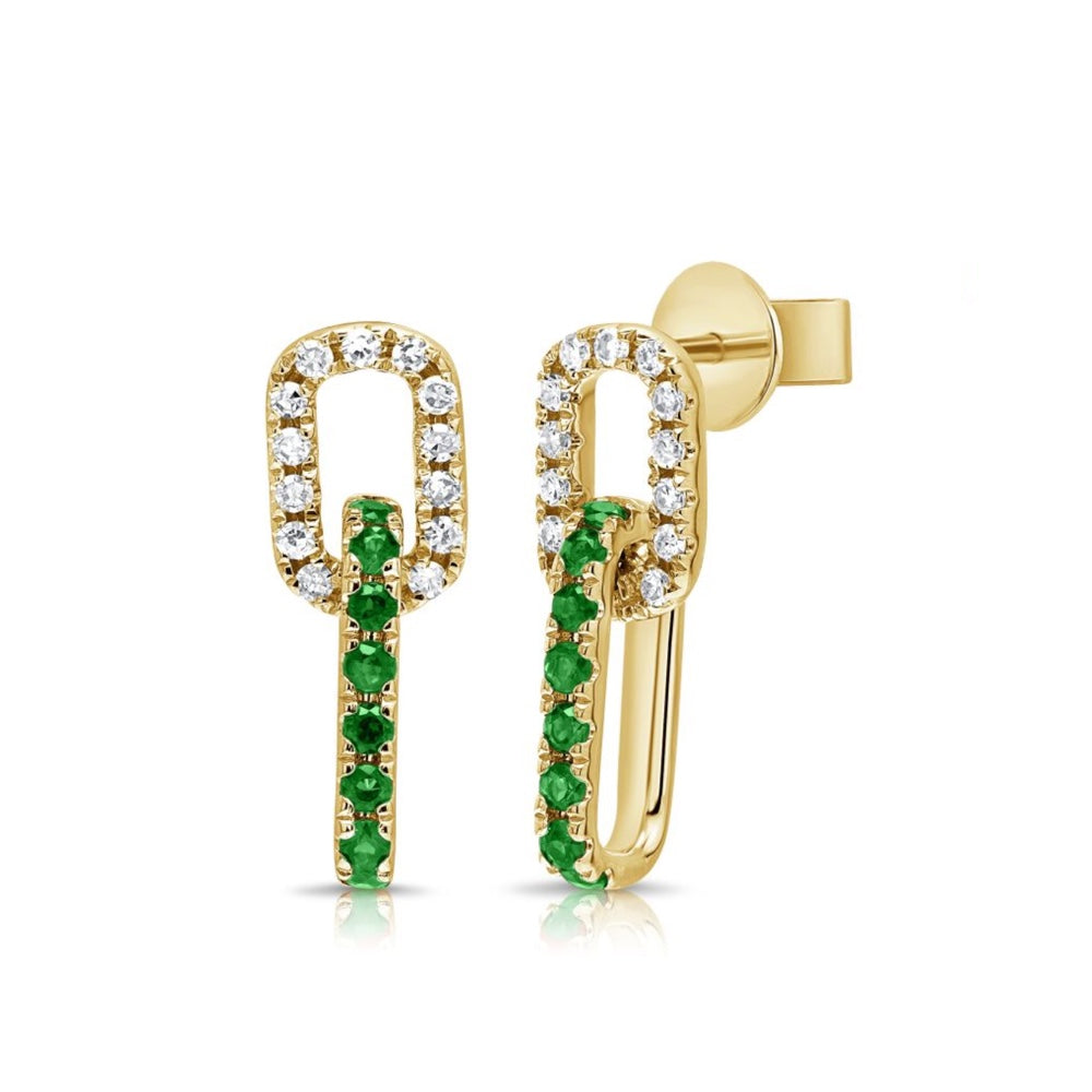14K Gold Gemstone & Diamond Link Paperclip Drop Earrings