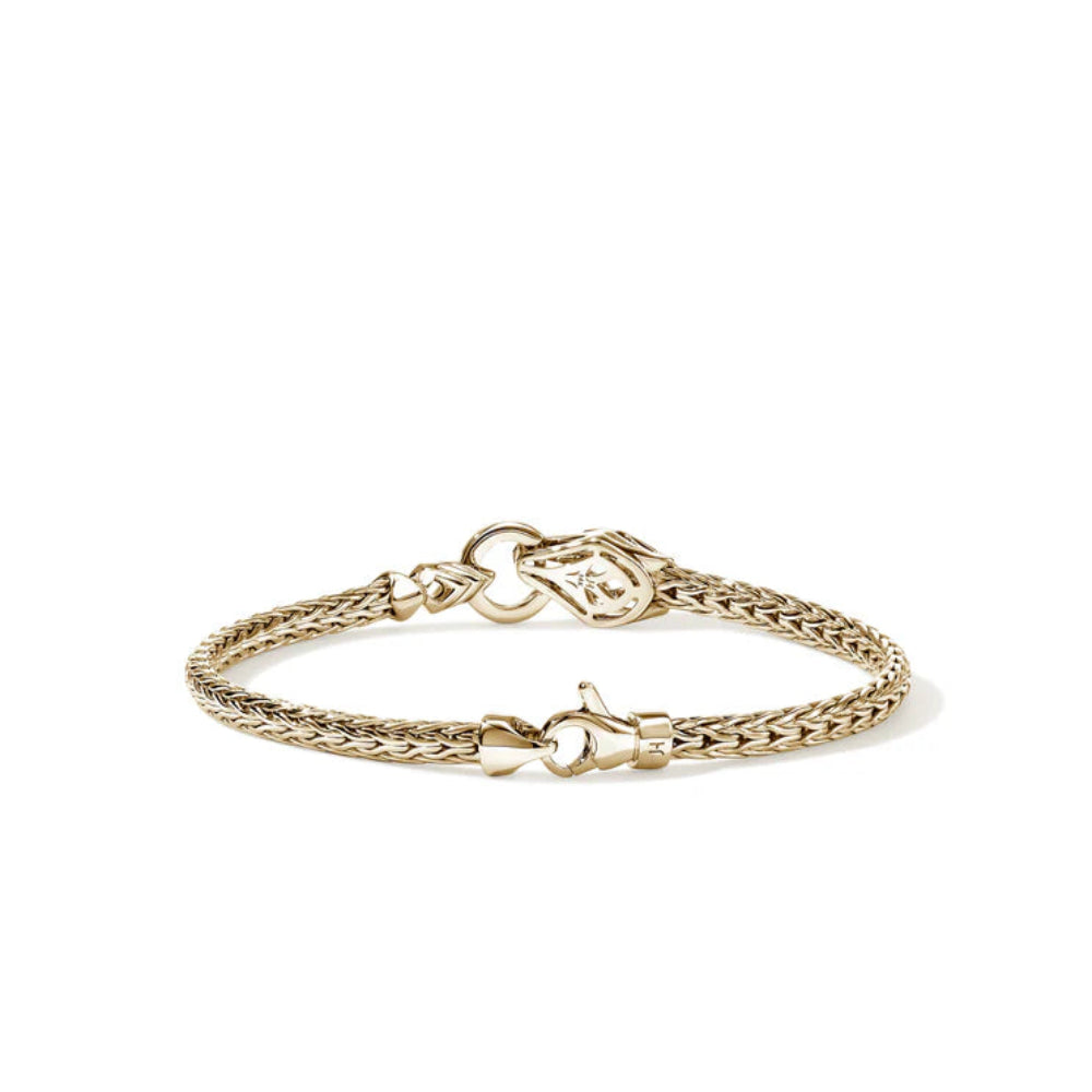 A supple chain bracelet featuring the hand-carved Naga dragon—a legendary Balinese symbol of love, protection and prosperity. Artisan handcrafted in reclaimed gold with ethically sourced diamonds.