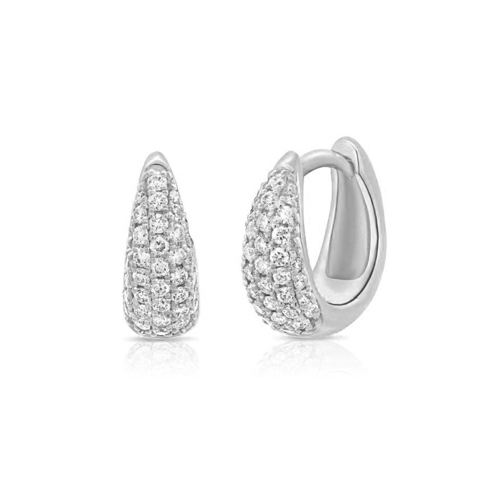 14K Gold Tapered Diamond Pave Huggie Earrings