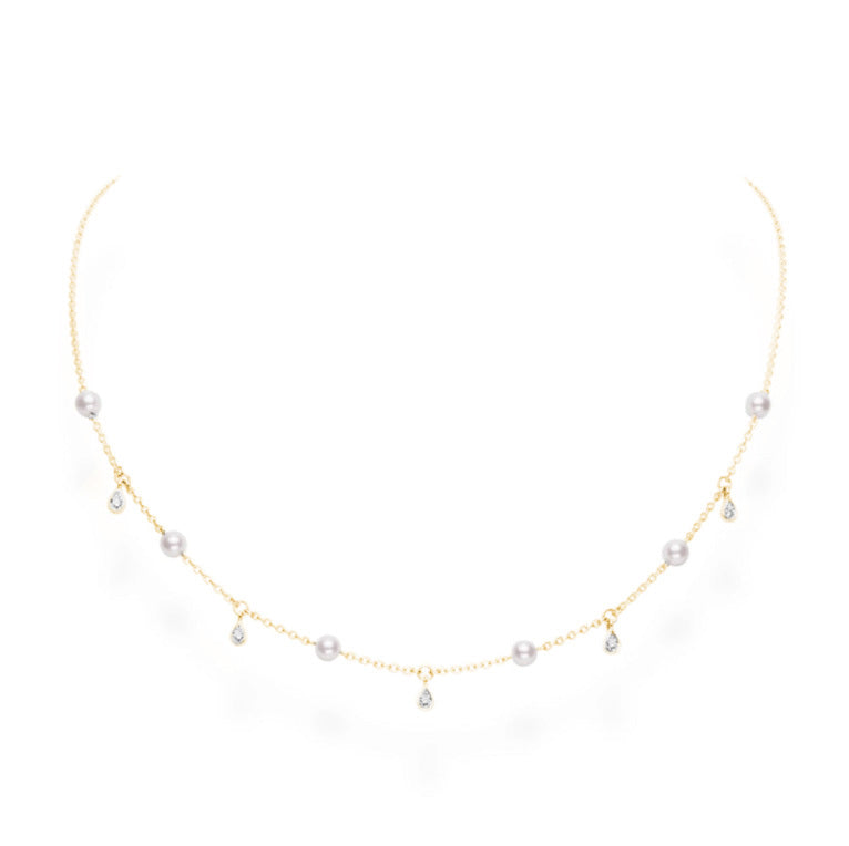 18K Gold Akoya Pearl and Diamond Drop Necklace