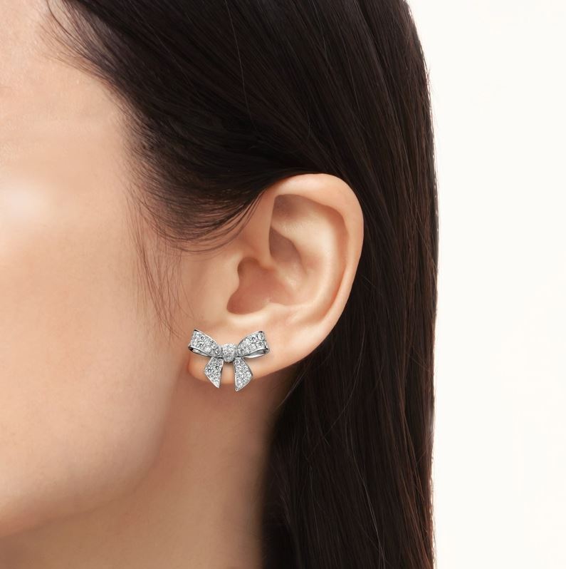 18K Gold Bow Charm Diamond Earrings