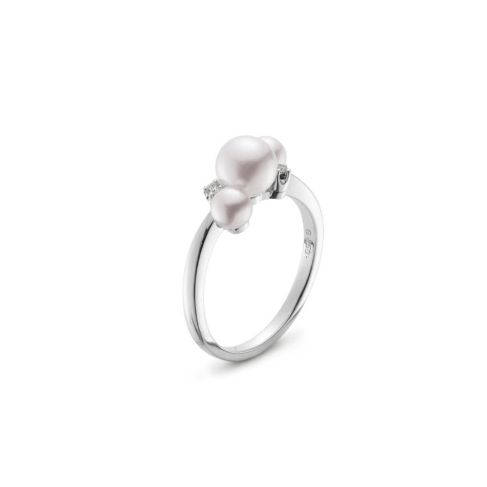 18K Gold Bubbles Akoya Cultured Three Pearl & Diamond Ring