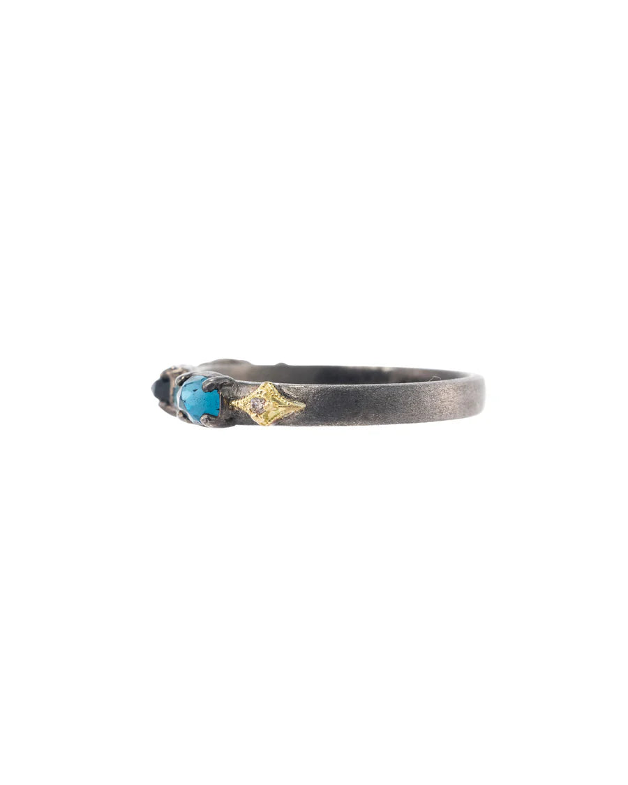 18K Gold & Gray Sterling Silver Crivelli Champagne Diamond & London Blue Topaz Stack Ring