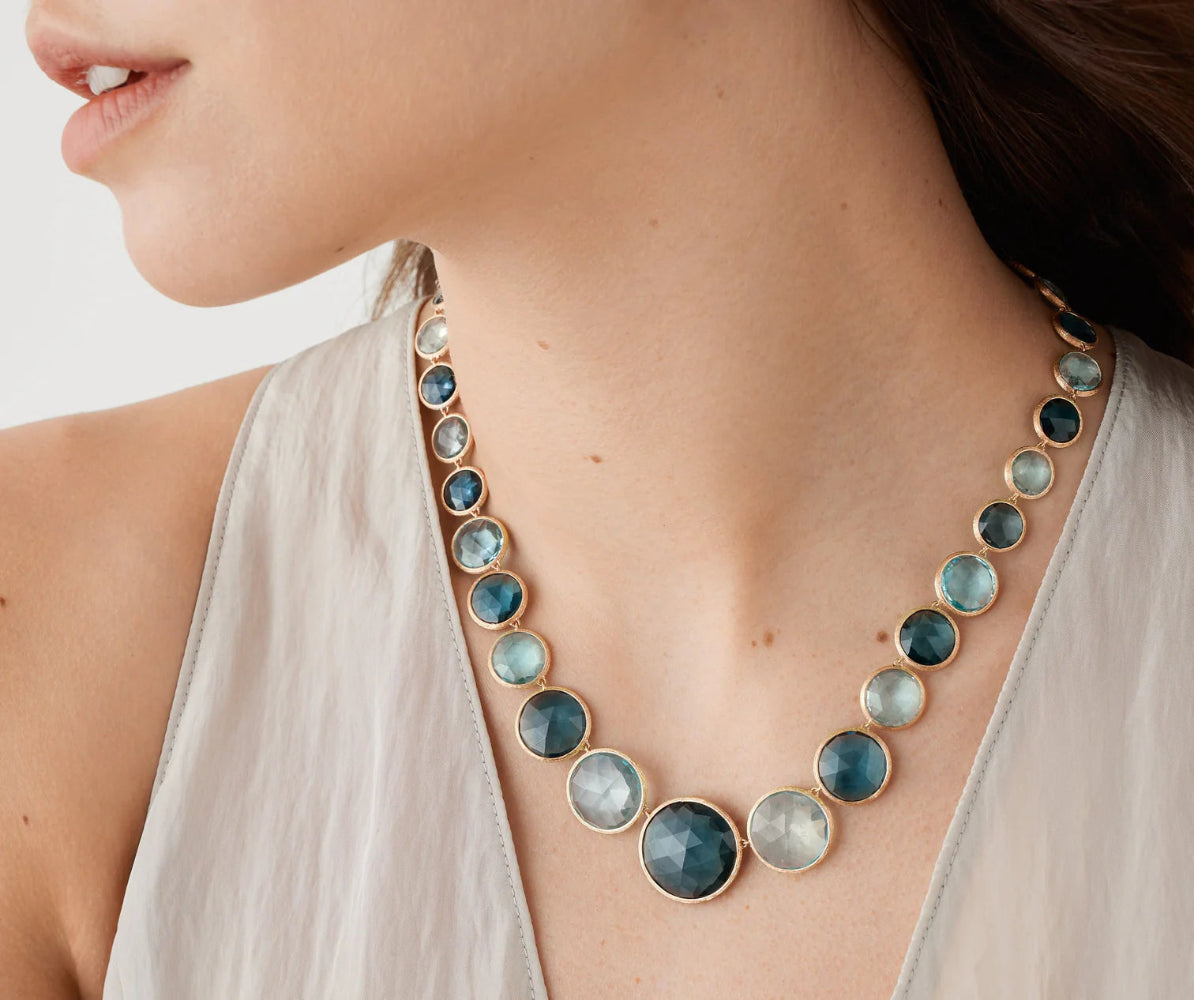 18K Gold Jaipur Color Graduated Mixed Topaz Collar