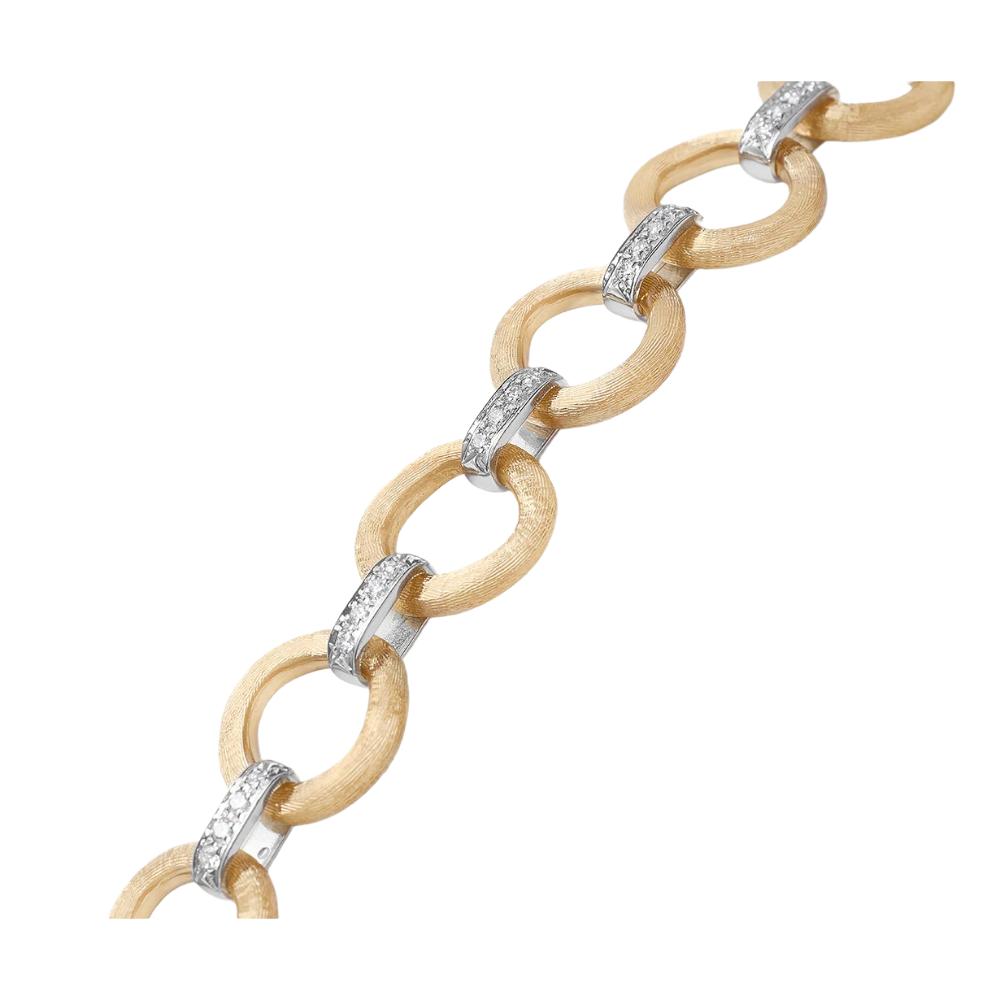 This 18K yellow gold link collar necklace is finely hand-engraved with the ancient Florentine technique and further embellished with diamond accents. It is ideally styled with the different stackable pendants of the Jaipur collection.