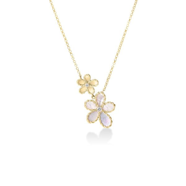 18K Gold Jasmine Diamond & Mother of Pearl Double Flower Necklace