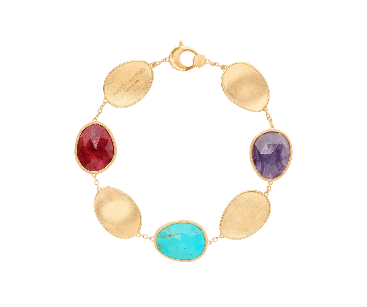 18K Gold Lunaria Bracelet with Thulite, Turquoise & Charoite