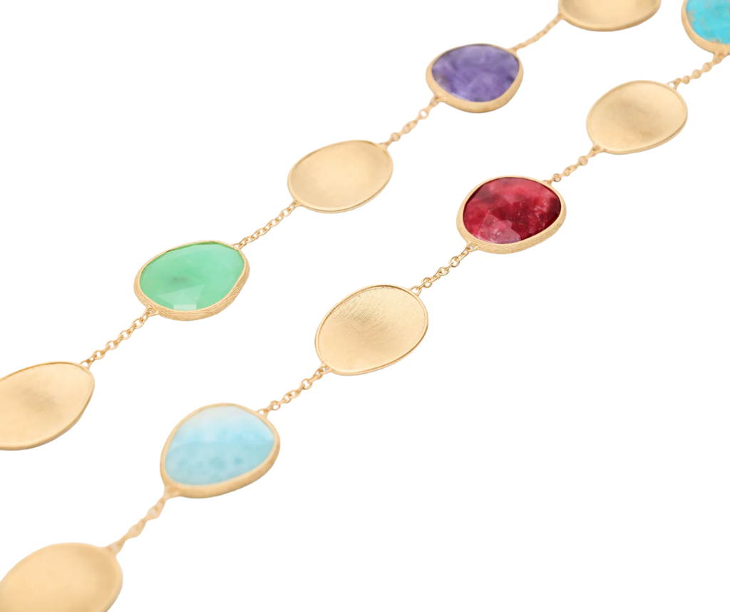 18K Gold Lunaria Collar Necklace with Mixed Gemstones
