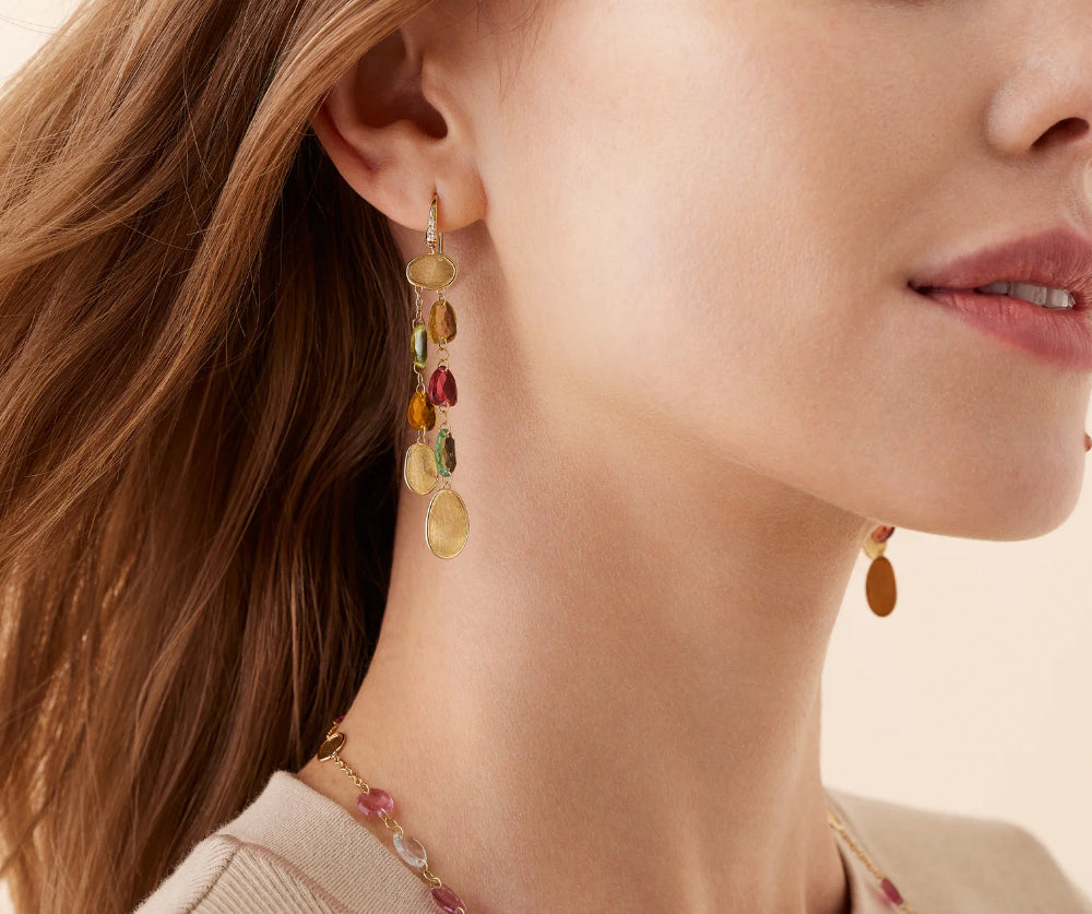 18K Gold Lunaria Multi-Strand Tourmaline Earrings with Diamond Accent
