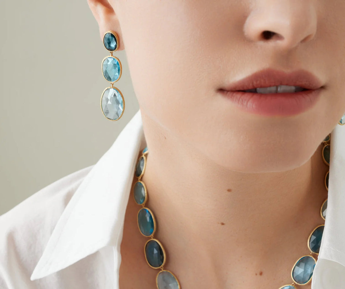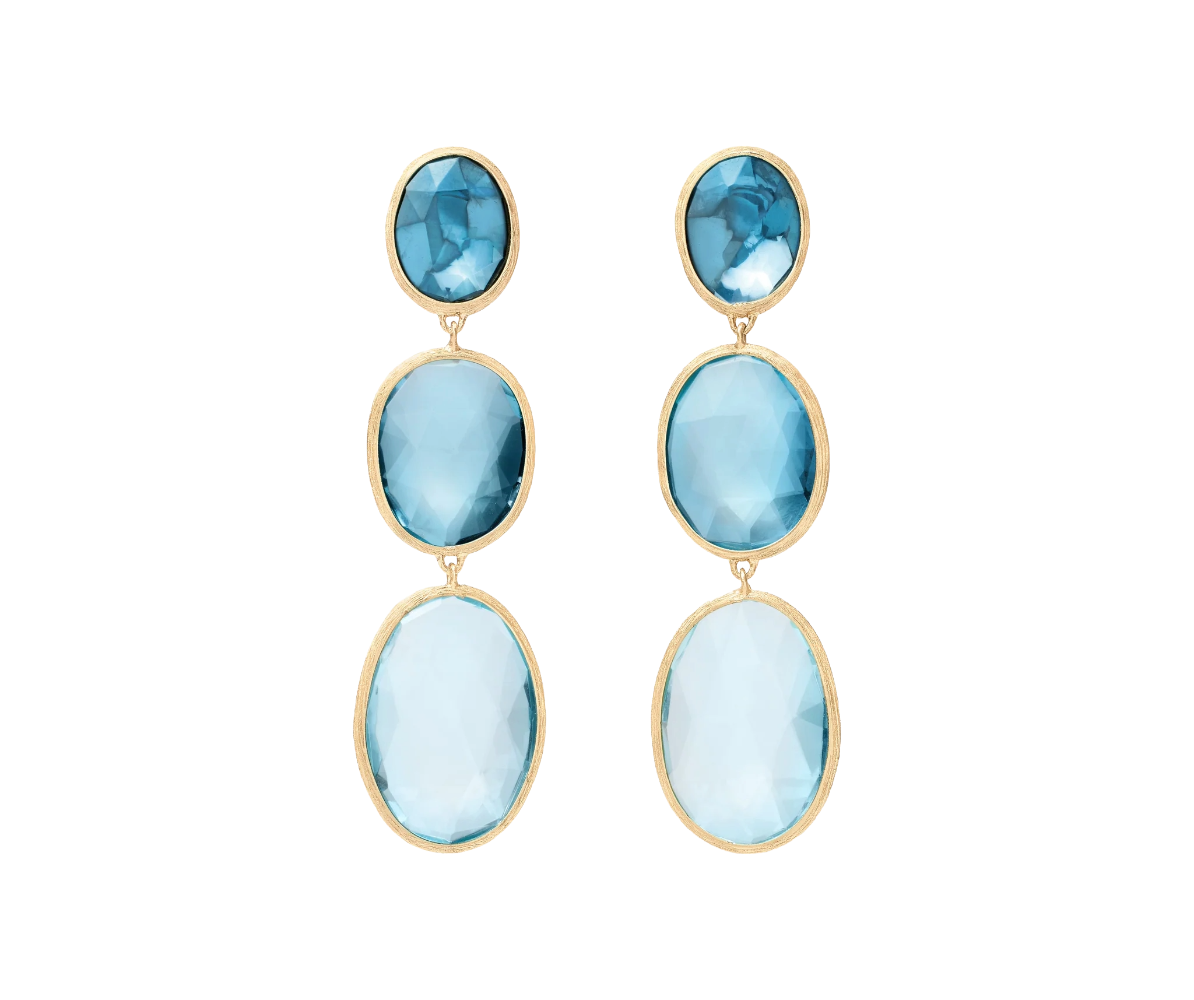 18K Gold Lunaria Three-Stone Mixed Topaz Earrings