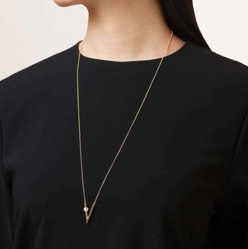 18K Gold V Code Akoya Cultured Pearl Pendant Necklace