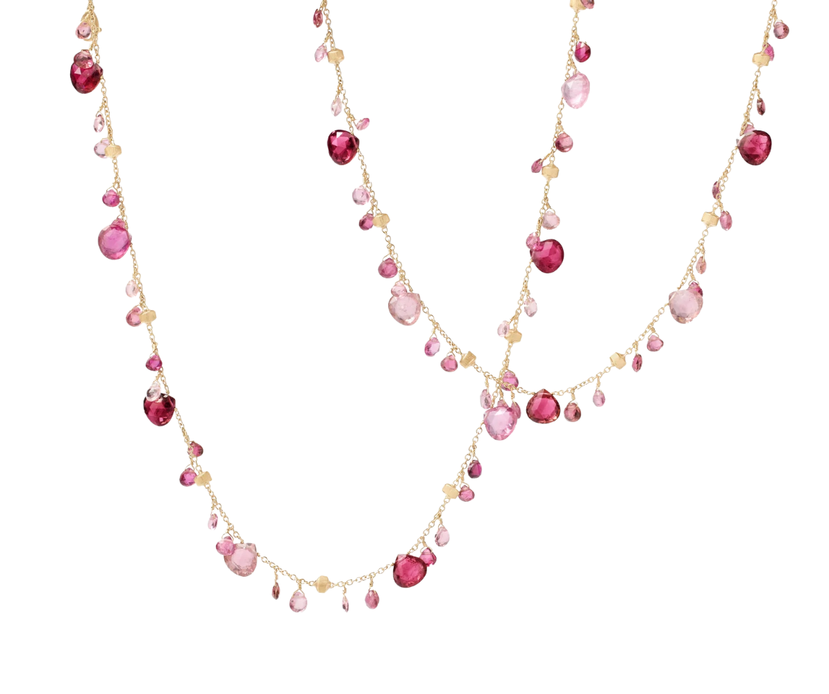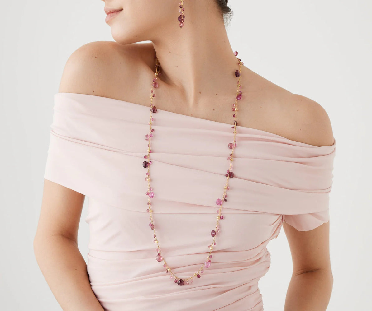 18K Paradise Gold Pink Tourmaline Long Necklace
