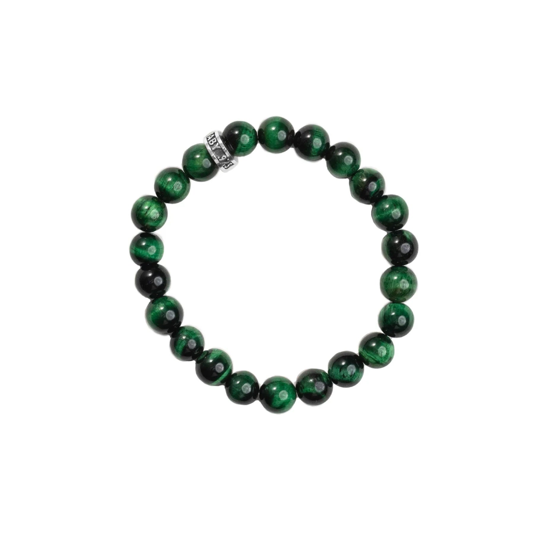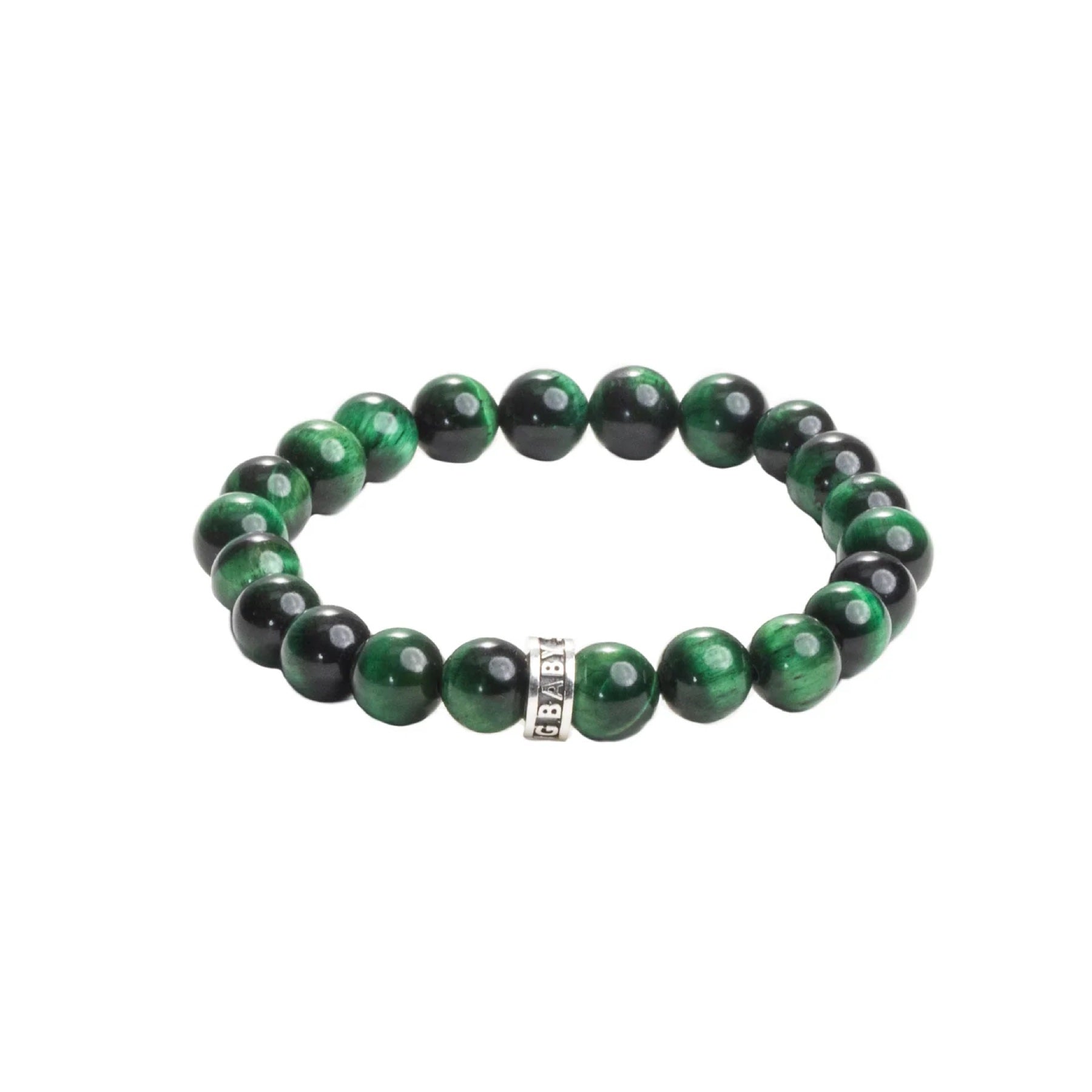Sterling Silver Green Tiger's Eye Beaded Bracelet with Logo Ring