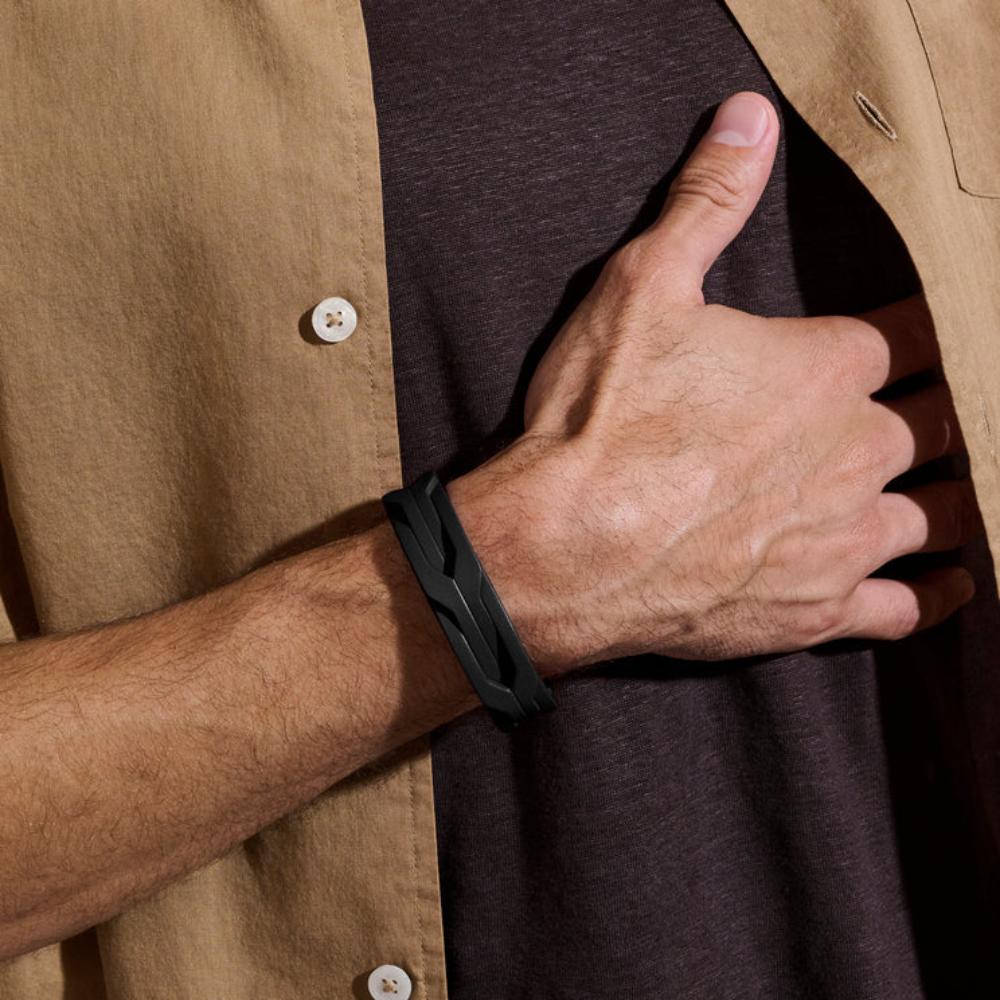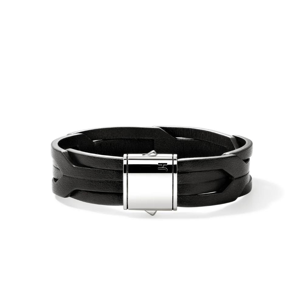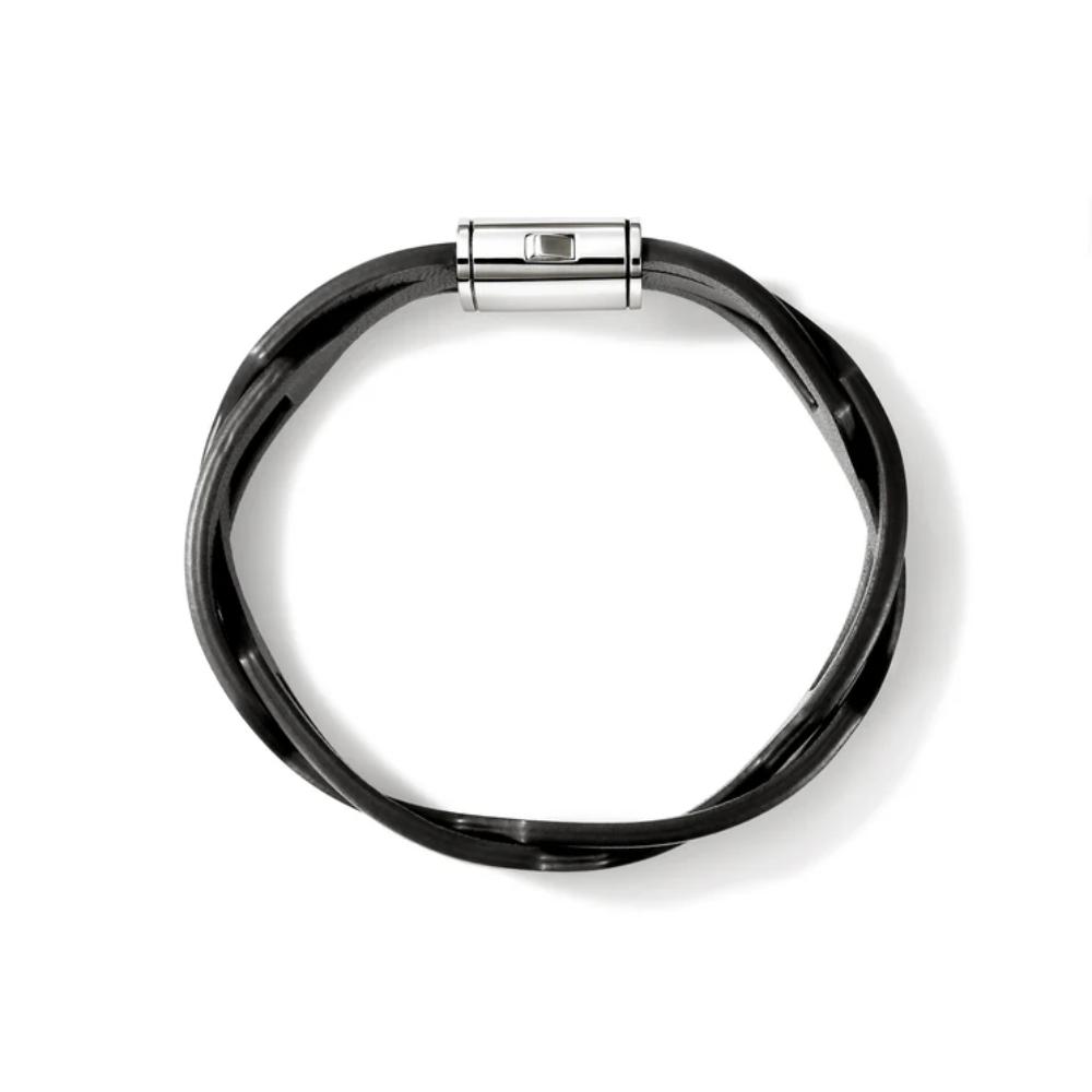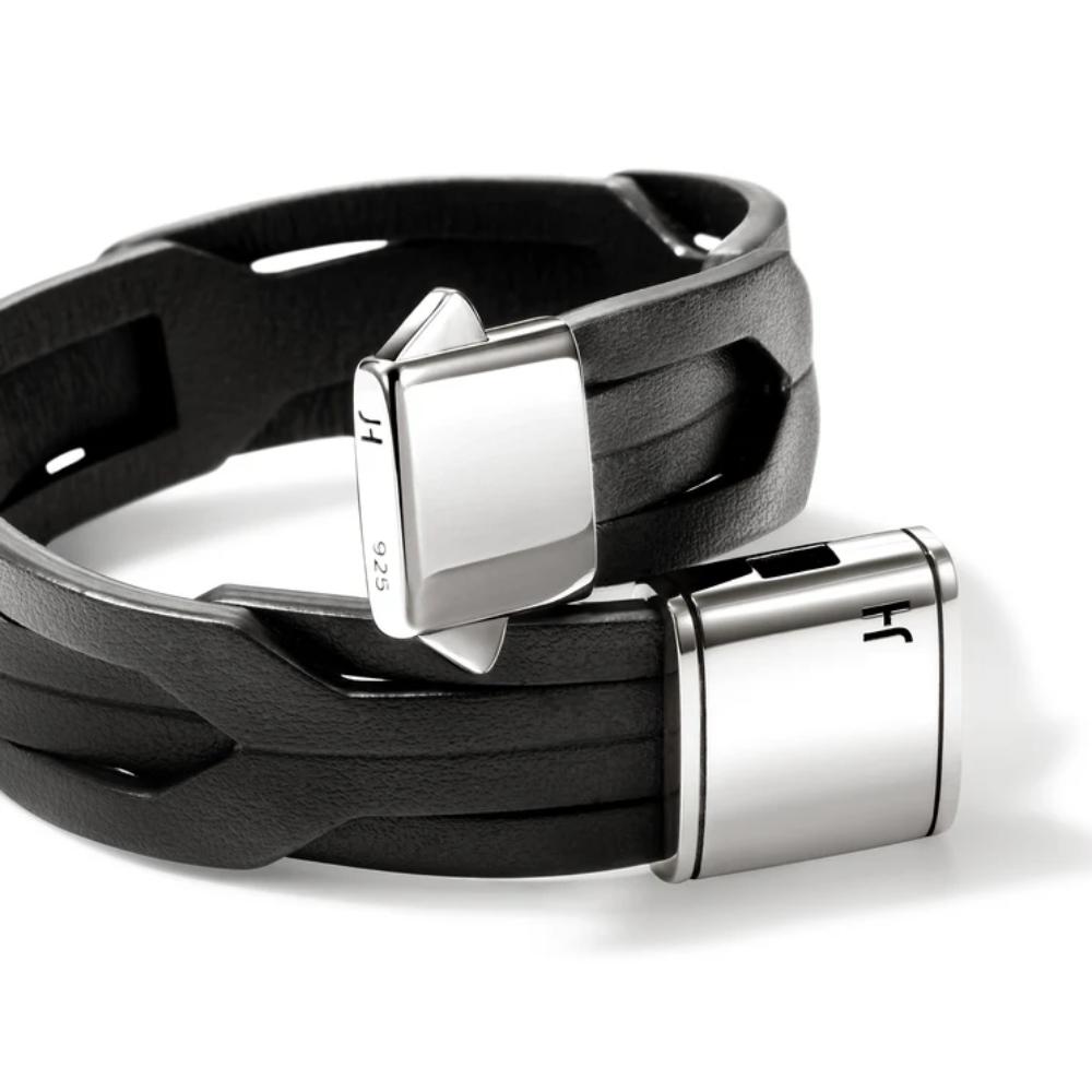 A graphic, modern take on our heritage Icon chain. Artisan handcrafted in genuine leather and reclaimed sterling silver with pusher clasp. Size large fits wrists measuring 6.75 - 7.25 inches.