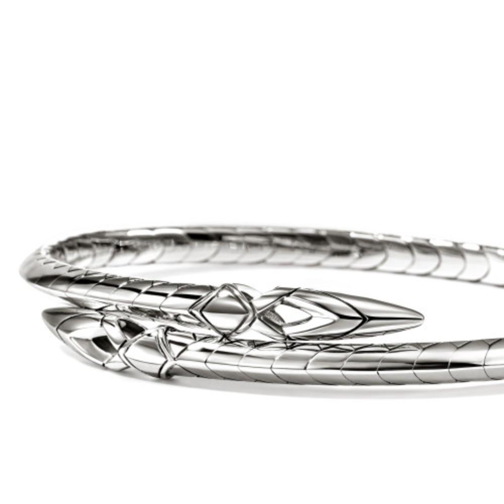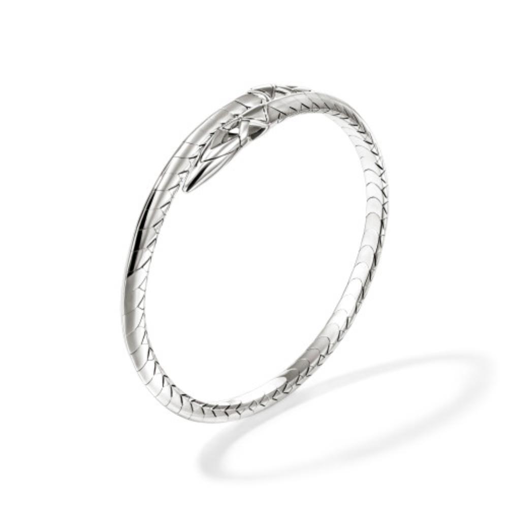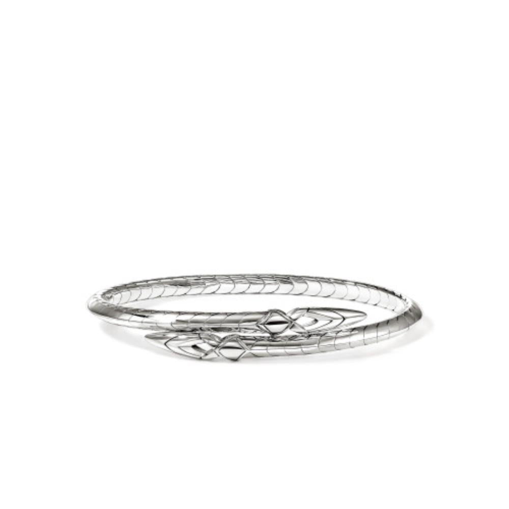 Embrace timeless elegance with this Sterling Silver Naga Bypass Flex Cuff Bracelet by John Hardy. Crafted from premium sterling silver, this 4MM bracelet features the iconic Naga design with a sophisticated bypass silhouette that gracefully wraps around the wrist. The flexible construction ensures comfortable all-day wear, while the polished finish catches the light beautifully.